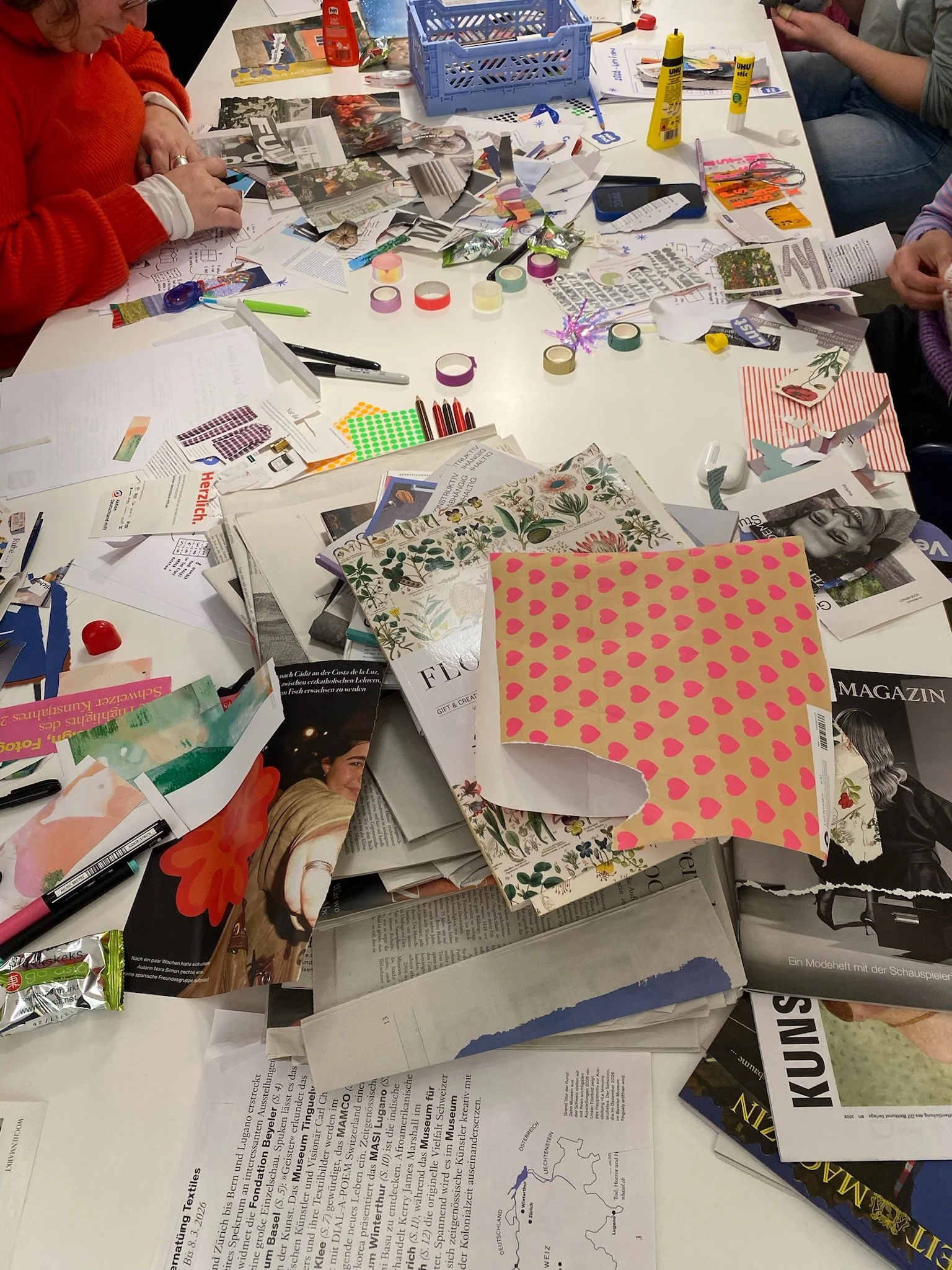 Zine Making – das Erstellen von kleinen Collagen-Büchern – ist eine alte feministische Praxis. Wir laden euch ein, mit uns euer 2026-Zine zu gestalten. Gemeinsam reflektieren wir das zurückliegende Jahr und richten den Blick vor allem auf das kommende. Du manifestierst, was du dir von 2026 wünschst – und genau das kommt in dein Zine. Keine Sorge: Du teilst mit der Gruppe nur das, was du teilen möchtest. Alles andere bleibt bei dir bzw. in deinem Zine.
